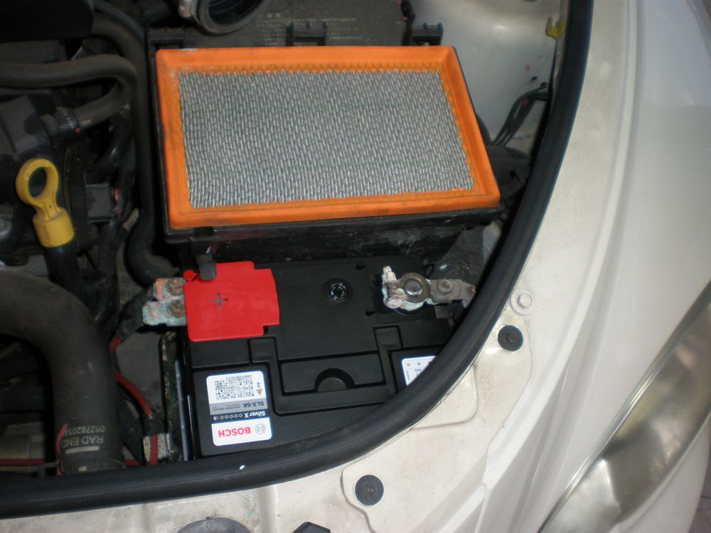 バッテリー端子をワイヤーブラシとマイナスドライバーで掃除して