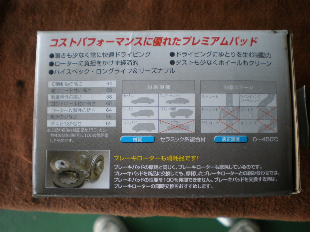 ブレーキダストの少ないパット♪