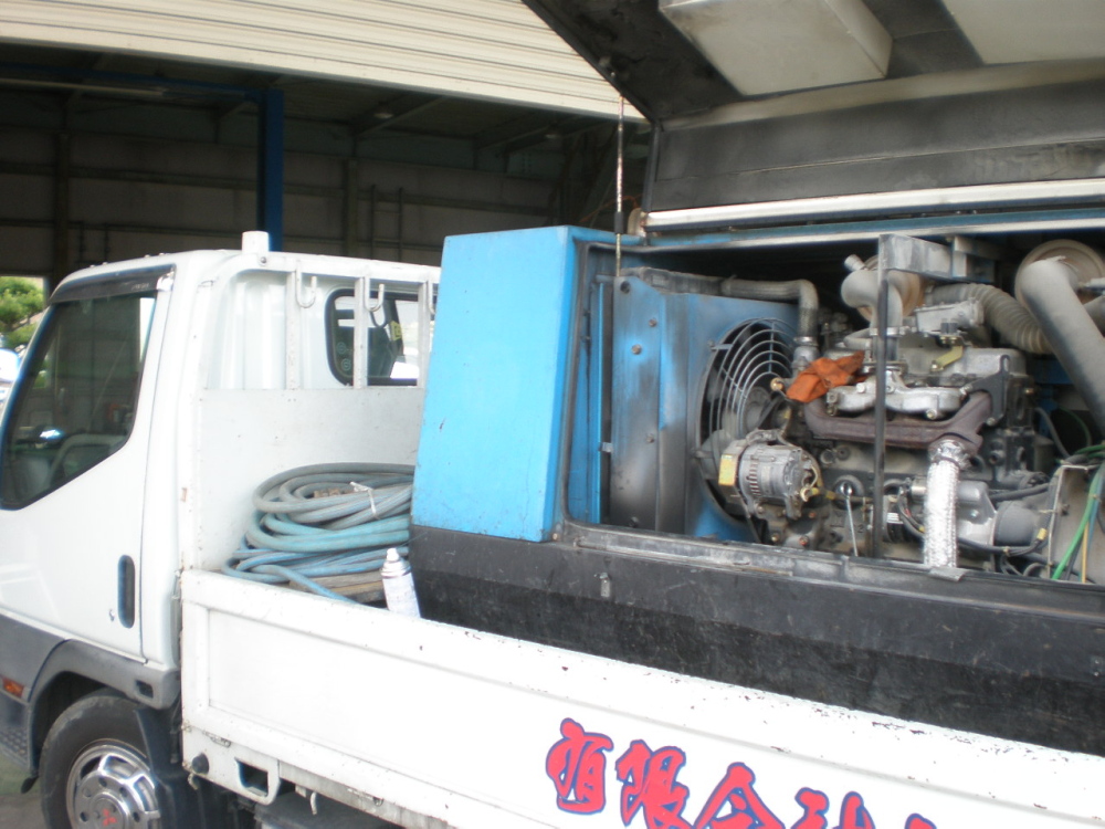 解体屋さんの、トラックとコンプレッサーの
