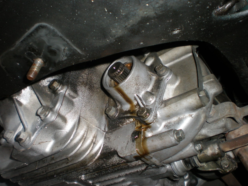左側のドライブシャフトのオイルシールから