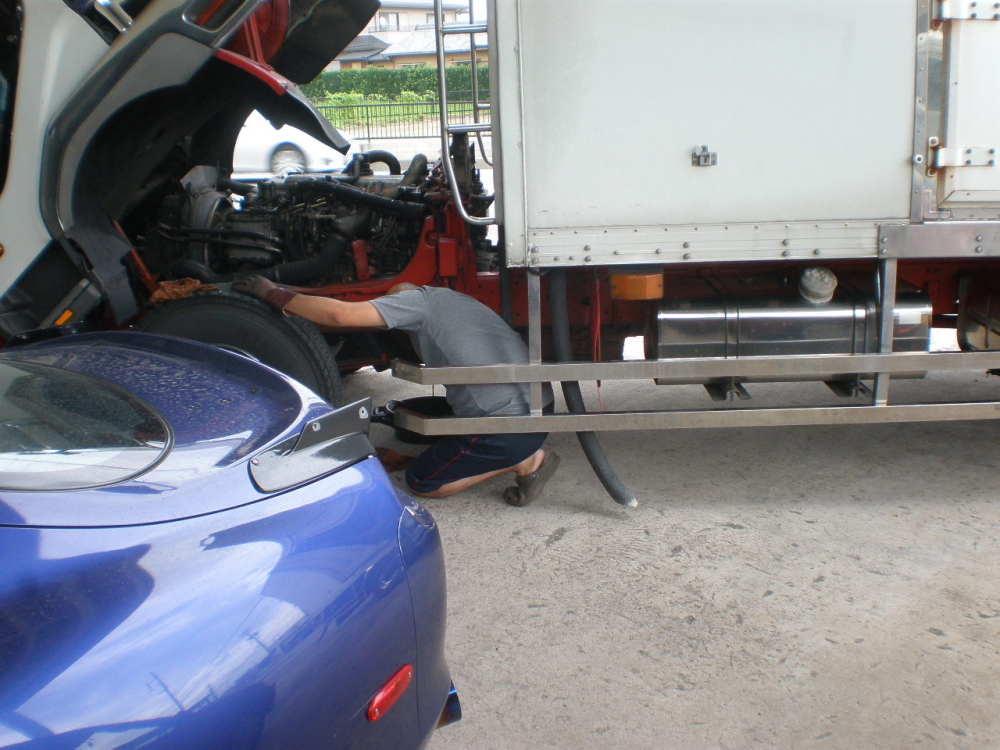 運送屋の社長さんは、オイル交換をせっせとしてましたemoji